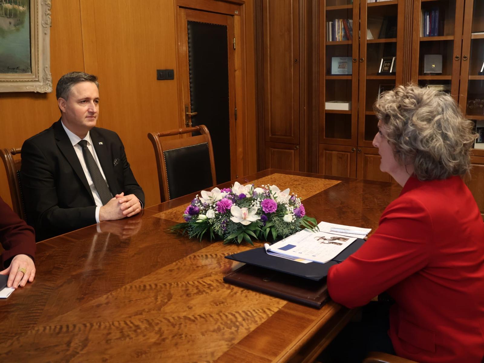 Bećirović spoke with the CBBH Governor Jasmina Selimović: strengthening the independence of the CBBH 12/30/2025 Tweet Member of the Presidency of BiH, Denis Bećirović, Ph.D. spoke with the Governor of the Central Bank of Bosnia and Herzegovina (CBBH) Jasmina Selimović, Ph.D. Governor Selimović commented on the business results in 2025, stressing the stable and responsible management of the monetary and financial system. The basic indicator of the currency board stability, the coverage ratio, has been increased to the historically highest level of 110.6%. The Bank's capital and reserves have increased to KM 1.72 billion, which is higher by KM 528 million compared to the previous year. During the current term of office of the new CBBH management, the record high amounts of net profit have been achieved, of which the CBBH net profit for 2025 amounts to KM 289.77 million, significantly exceeding the plan for the current year. After the transfer of profit to the budget of Bosnia and Herzegovina for 2026, the CBBH will pay more funds to the budget of Bosnia and Herzegovina in these three years of the term of office than in the entire history of the CBBH existence so far. These are very significant contributions, with the transferred profit of the CBBH in 2025 alone representing 17 per cents of the total revenues in the budget of the state of Bosnia and Herzegovina. At the same time, in 2025, the CBBH further strengthened its position through the increase of monetary gold reserves, which reached a record level of 3.5 tons with a total value of KM 799 million, representing the highest level since the establishment of the CBBH. The foundations have been laid for the improvement of payment systems through intensive digitization and modernization of the infrastructure, having the continuous harmonization with the standards and practices of the European Union. Bećirović congratulated Governor Selimović and the CBBH on the achieved results, pointing out that the CBBH represents one of the key institutions for the stability of the state of Bosnia and Herzegovina, and that its independence is extremely important for the overall economic and financial system. Bećirović said that the Presidency of BIH unanimously made a decision on the appointment of the current management of the CBBH, respecting the legal criteria, and especially the criterion of expertise. Time has shown that it was the right decision, as evidenced by the results achieved in the last two years. At the end of the meeting, Bećirović wished the Governor, management and employees of the CBBH a successful continuation of work, with the aim of strengthening the economic stability of Bosnia and Herzegovina.